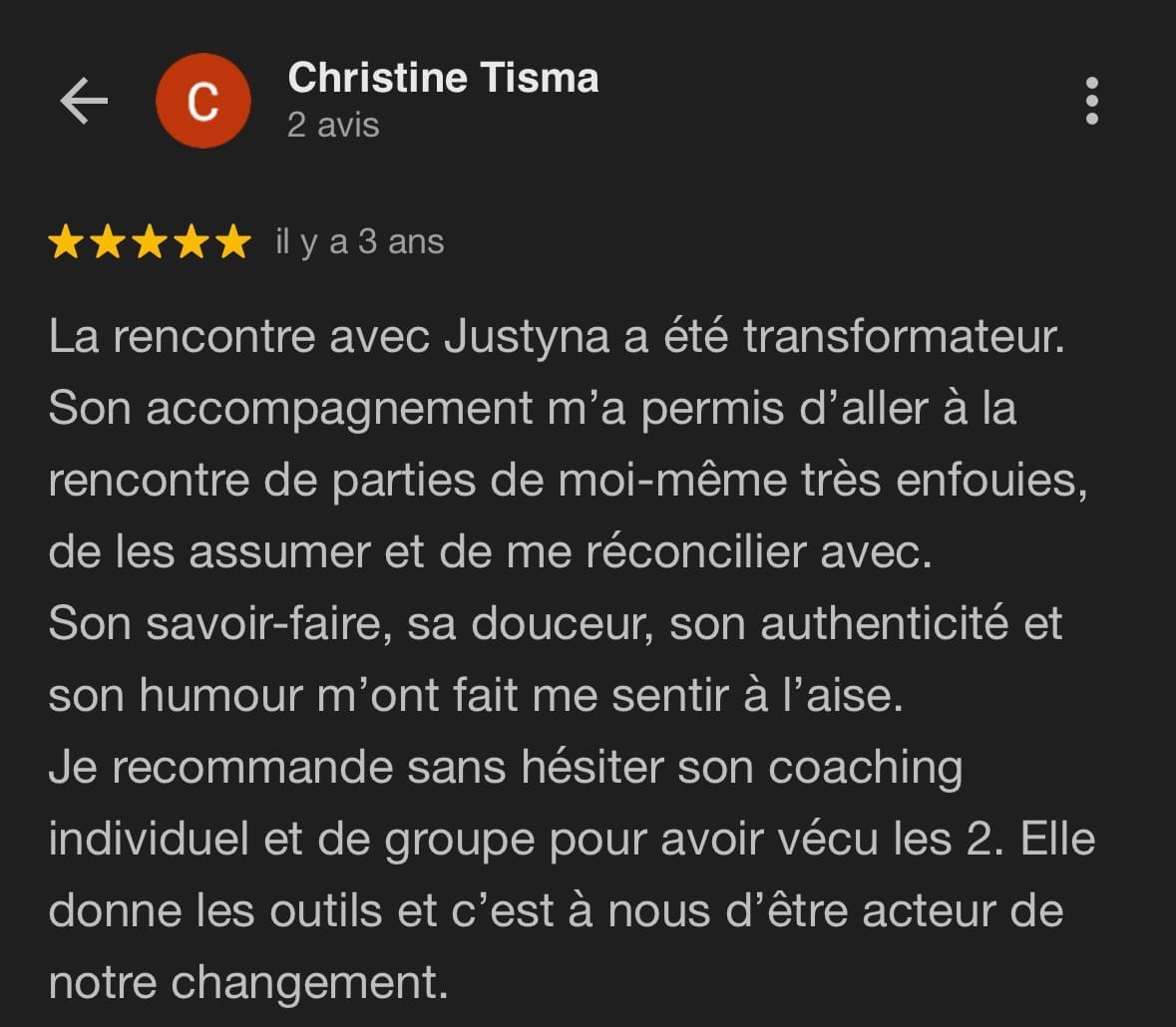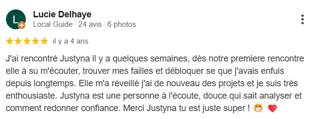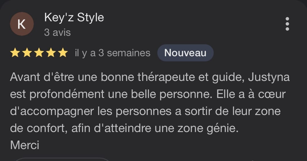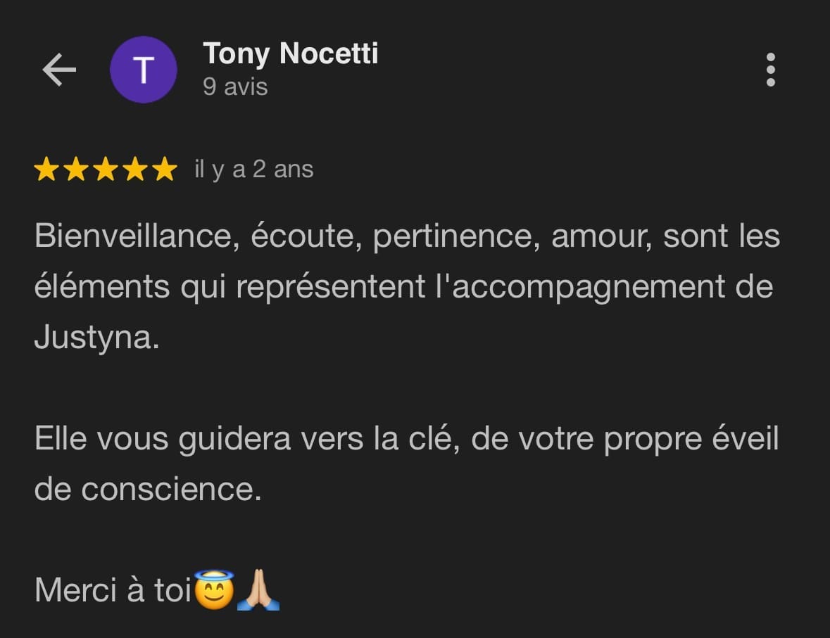 “Justyna est un miroir d’une clarté redoutable et d’une douceur infinie. Elle m’a ramenée à ma vérité,